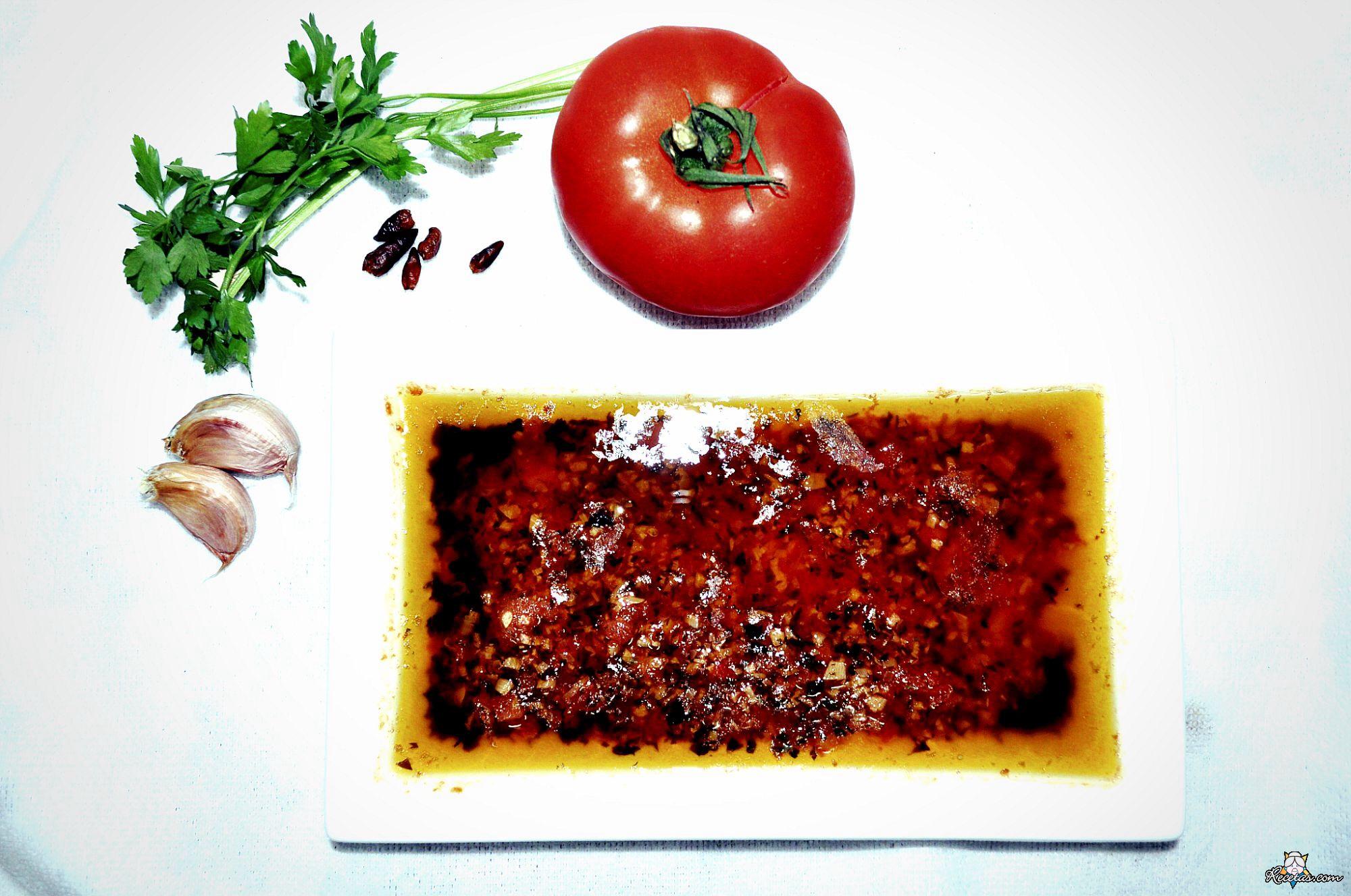 Borriquete de Conil a la espalda con vinagreta caliente de tomate