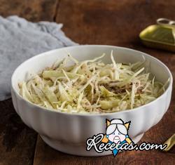 Cortar la col en fina juliana. Lavar, secar con cuidado y colocarla en una ensaladera grande.