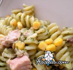 Caliente agua y sal en una cacerola grande. Llévela a punto de ebullición e incorpore los fusilli. Revuelva suavemente y cocine hasta que la pasta esté al "dente". Apague el fuego y vierta 1/2 taza de agua fría en la olla.