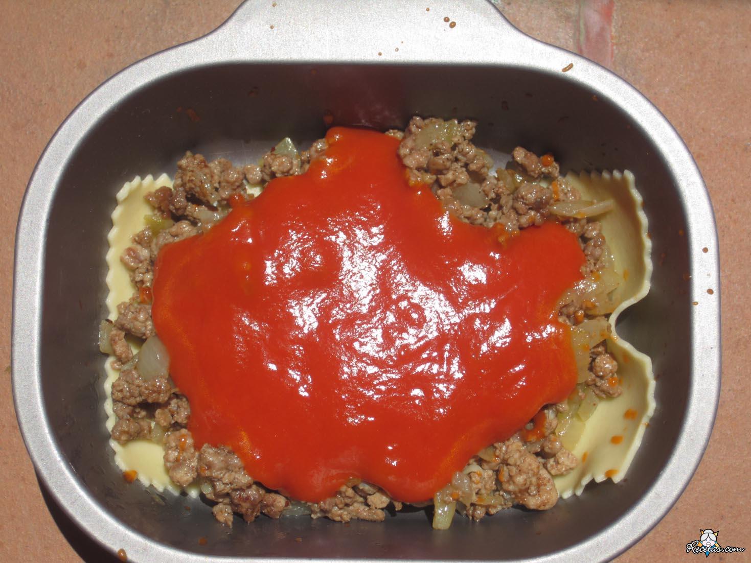 Lasaña de carne con tomate