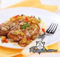 Cómo hacer Pollo con almendras y salsa de albaricoques