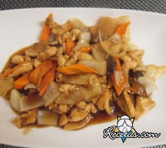 Poner las setas en remojo en agua frÃa durante aproximadamente 30 minutos, escurrirlas, cortar cualquier trozo de tallo que hubiera quedado, luego cortar en cubos grandes y reservar. Cortar la zanahoria [+]