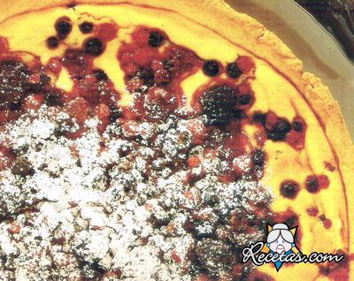 Para la masa, mezclar la harina rápidamente con la mantequilla blanda cortada en trozos pequeños, el azúcar, una pizca de sal y el huevo. Formar un bollo, envolverlo en papel film y dejar reposar en la [+]