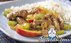 Cortar las pechugas de pollo en daditos regulares de 2 cm. aproximadamente.Calentar el aceite e incorporar los trozos de pechuga. Mover hasta sellar. Posteriormente agregar las almendras junto con la salsa [+]