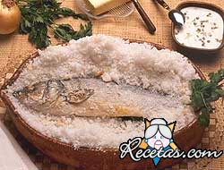 Precalentar el horno a 180ºC.Hacer en una charola de horno profunda una cama de tres centÃmetros de espesor de sal gruesa. Con un atomizador, mojar la sal.Lavar el pescado y eliminar las escamas que [+]