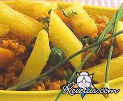 Ppicar las papas en cubos chicos enjuagar y dejar en aguaPoner a cocinar la carne en su propio jugo, cuando se reseque agregar un chorrito de aceite y dorar la carne.Escurrir las papas, agregarlas junto [+]
