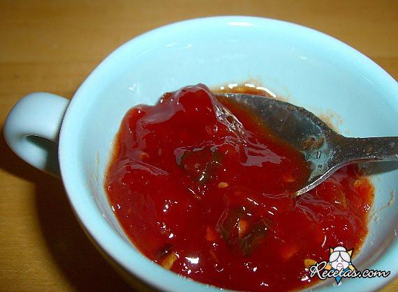 Colocar el contenido de la lata de tomates picados en un recipiente, agregar 4 o 5 clavos de olor y un trocito de jengibre, cocinar 10 a 12 minutos.Retirar los clavos y el jengibre y añadir 10 gr. de [+]