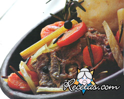 Dore el ajo y el cordero, agregue el jamón y la cebolla. Retire el ajo, cuando la cebolla esté cocida y agregue los tomates picados. Cocine a fuego mediano hasta que la carne esté tierna.Salpimiente, [+]