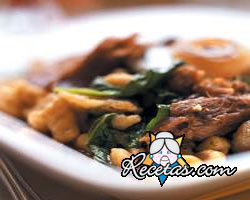 Pelar los riñoncitos y quitarles la grasa, cortarlos por la mitad y echarles sal gruesa sobre la parte cortada. Al cabo de 15 minutos, lavarlos y dejarlos escurrir en un colador. Luego secarlos, ponerles [+]