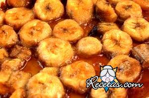 Para preparar las bananas caramelizadas pelar las bananas y cortarlas en rebanadas de media centÃmetro de ancho. Colocar el azúcar en una cacerola doble fondo y derretir a fuego lento hasta que alcanza [+]