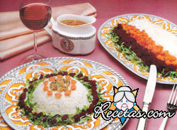 Asar los pimientos, pelarlos y quitarles las semillas. Hervir los huevos, pelarlos y cortarlos en 6 gajos cada uno.Colocar los pimientos en una fuente redonda, poner los huevos y las aceitunas, esparcir [+]
