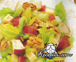 Lavar las manzanas y cortar a pequeños dados sin pelarla, suprimiendo el corazón. Colocarlas en un recipiente y rociarlas con el zumo de limón.Cortar en trozos muy pequeños el apio y añadirlo a las [+]
