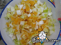 Pelar la naranja y cortarla en gajos. Colocar éstos en un recipiente espolvoreado de azúcar para que largue el jugo.Luego de un rato, colar las naranjas y con este jugo, preparar la salsa, mezclándola [+]
