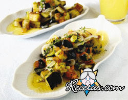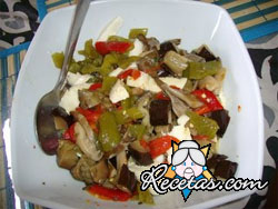 Colocar los pimientos y berenjenas en una fuente y hornear durante 40 minutos. Luego de ese momento, retirarlos y quitarles la piel.También quitarles las semillas a los pimientos. Las berenjenas [+]