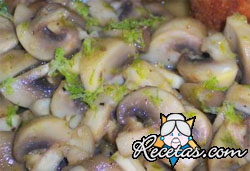 Pulir los champinones con un paño seco (no mojarlos) y picarlos.Disponerlos en un bol junto con el cebollÃn y el cilantro picados.Rociar inmediatamente con jugo de limón, agregar aceite, sal y pimienta [+]