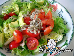 Lavar y cortar la lechuga o escarola en juliana y acomodarla en un recipiente. Agregar los tomatitos cortados al medio y la palta en cubos o rodajas.Exprimir el medio limón y rociar. Agregar un hilo de [+]