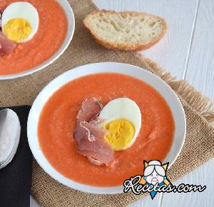 Lavar todas las verduras, pelar el pepino, retirar los filamentos blancos y las semillas de los pimientos, pelar el ajo y la cebolla.