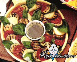 Lavar y cortar las verduras en rodajas. Asarlas en una plancha acanalada o en un asador. Cortar la mozzarella en rodajas.   En un bol, mezclar el aceite y el vinagre. Incorporar el perejil y los [+]