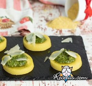 Para preparar los bocados de polenta y pesto, primero preparar el caldo de verduras y llevar a ebullición.