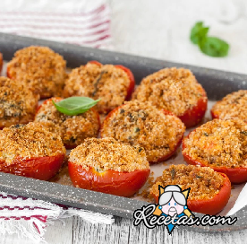 Lavar muy bien los tomates. Retirar el tallo, cortarlos por la mitad y vaciarlos con una cuchara, recogiendo la pulpa en un tazón. Picarla finamente con un cuchillo. Agregar a la pulpa el pan rallado [+]