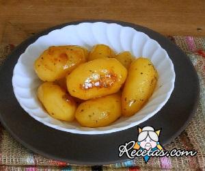 Cocinar al vapor las patatas nuevas durante aproximadamente 10 minutos. Mientras tanto, en una sartén, derretir la mantequilla, espolvorear con el azúcar, revolver por un minuto con una cuchara de madera [+]