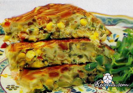 En una sartén con aceite de maÃz saltee la cebolla picada. Agregue los granos de maÃz y el calabacÃn cortado en rodajas. Cocine durante 2-3 minutos, o hasta que estén tiernos. Añada los tomates [+]