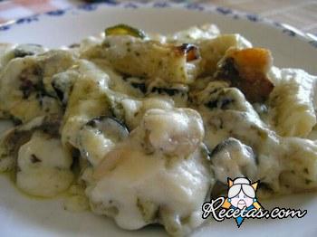 Corte los calabacines en rodajas finas. Caliente una buena cda. de mantequilla o margarina en una guisera con el ajo; agregue los calabacines, sal, pimienta y nuez moscada y saltéelos a fuego mediano [+]