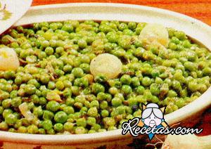 Desgrane los guisantes; lave las hojas del corazón de lechuga y córtelas en tiritas. Corte los tallos de las cebollitas y pélelas, dórelas suavemente en 50 gr. de mantequilla, agregue las guisantes, la [+]