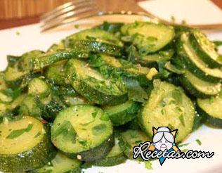 Cortar los zucchini (con piel) en rodajitas o a lo largo. Rehogar la cebolla en aros y el ajo picado en el aceite de oliva caliente, a fuego bajo. Incorporar las rodajitas de zucchini, aumentar el fuego y [+]