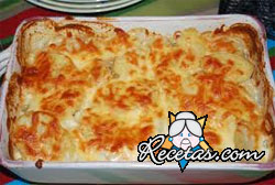 Unte una asadera de vidrio con la mitad de la manteca. Pele las papas, córtelas en daditos pequeños y condiméntelas a gusto con sal y pimienta. Caliente la leche en el microondas, de 45 segundos a 1 [+]