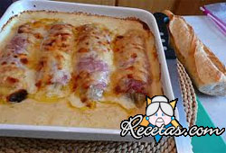 Lavar las endibias y quitar la parte del tronquito hacia adentro, ahuecando. Hervirlas en agua salada o al vapor, luego escurrirlas bien. Cortar el jamón en tiritas. Batir los huevos con poca sal, [+]