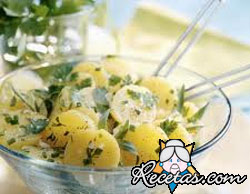 Cueza las papas, bien lavadas, en agua salada durante unos 25 minutos; pélelas y póngalas en una fuente caliente. Pique la cebollita, el perejil y la albahaca, o una sola de estas hierbas; mézclelas con [+]