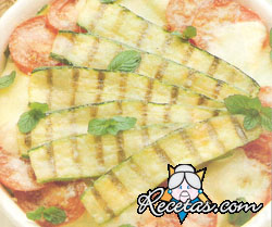 En una cazuela ligeramente engrasada, disponer una capa de calabacines, previamente asados a la parrilla. Salpimentar y cubrir con otra capa de tomate y otra de mozzarella en lonchas.Seguir formando nuevas [+]