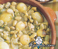Rehogar las cebollitas en una cacerola con la mantequilla. Cuando empiecen a dorarse, añadir las habas, rehogar con la cacerola tapada y a fuego lento, durante 10 minutos.Agregar la lechuga, cortada en [+]