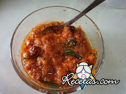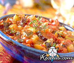 Cortar todas las verduras en cubos de igual tamaño (3 - 4 mm. de lado)Colocar en una cazuela las cebollas, los pimientos, los ajos.Cocinar tapado de 2' a 4' al 100% de potencia.Agregar las [+]