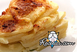 Derrita parte de la manteca en una sartén profunda. Eche una tercera parte de las papas; añada sal, pimienta y manteca. Agregue otra capa de papas. Repita la operación hasta completar una tercera capa. [+]