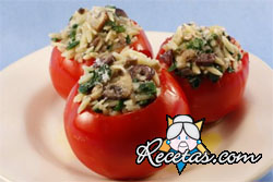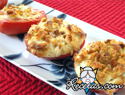 Cortar una tapa de cada tomate. Con una cucharita vaciarlos cuidadosamente, para no romperlos. Salarlos por dentro, dejar que absorban la sal por unos minutos y darlos vuelta para que escurran el agua que [+]