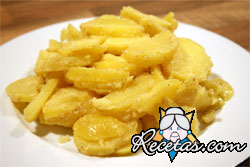Lavar las papas y cortarlas en trozos regulares. Cocinarlas a fuego moderado en el aceite junto con los dientes de ajo y el laurel. Cuando estén tiernas, lievar a fuego máximo para que se doren bien. [+]
