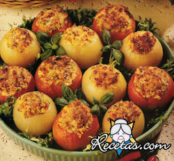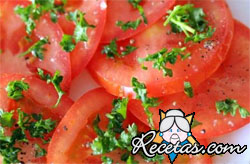 Lave los tomates, córtelos en mitades y apriételos para sacar las semillas; salpimiéntelos.En una sartén caliente el aceite, agregue el ajo picado y luego las mitades de tomate: saltéelos a fuego [+]