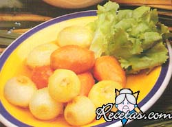 Colocar agua en una cacerola y llevarla a fuego. Pelar las cebollas e introducirlas en el agua cuando rompa el hervor. Cocinarlas durante 7 minutos, aproximadamente.Retirarlas con ayuda de una espátula, [+]