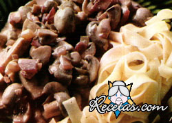 Remojar los bongos secos en agua caliente. Limpiar y lavar los champiñones, cortarlos en cuartos. Cortar la panceta y la cebolla en daditos. Calentar la panceta en una cacerola hasta que se derrita y [+]