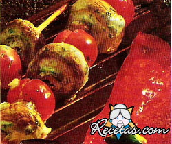Pula los champiñones con un paño limpio, sin mojarlos. Lave los tomatitos.Ensarte champiñones y tomatitos alternadamente en las brochetas, intercalando alguna hojita de albahaca.RocÃe con aceite de [+]