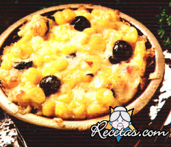 Rehogar la cebolla finamente picada en la mitad de la manteca. Mezclar la Salsa bechamel con las dos latas de choclo escurridas, las aceitunas descarozadas; el queso cortado en dados y la cebolla. Batir [+]