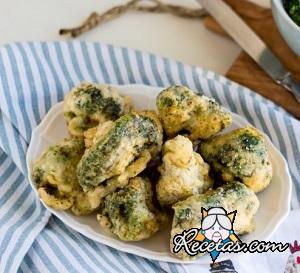 Separar las flores de brócoli ya blanqueadas en trozos pequeños. Preparar la masa mezclando la harina con la cerveza, usando un batidor de mano o una cuchara. La masa debe ser gruesa y envolvente. [+]