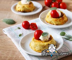 Hervir las patatas, pelarlas y triturarlas con un tenedor en un tazón grande. Mientras tanto, cortar los calabacines en cubos y dorarlos en una sartén durante unos minutos a fuego lento para que pierdan [+]