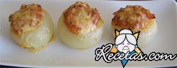 Preparación:Realice un corte transversal en la superficie de las cebollas, como si fuera una tapa, sin llegar a separarla.En una fuente para horno forme un colchón con sal gruesa.Disponga las cebollas [+]