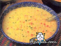 Batir el maÃz, reservando algunos granitos, con un poco del agua de la lata, dejándolo un poco espesoEn una cacerola calentar la mantequilla y sofreÃr la cebolla. Juntar la harina y rehogarlo bien. [+]