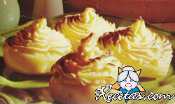 Preparación:Pele las papas, córtelas en cuartos y cuézalas en agua salada, hasta que estén blandas. Escúrralas, deje que evaporen el agua que aún contienen y redúzcalas a puré; séquelo un poco [+]