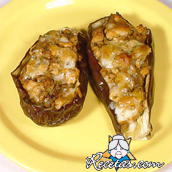 Partir las berenjenas por la mitad a lo largo, y hervir en agua con sal. Dejar enfriar, sacar la pulpa y picar finamente. Poner en una sartén el aceite y dorar la cebolla, la pulpa de las berenjenas y [+]