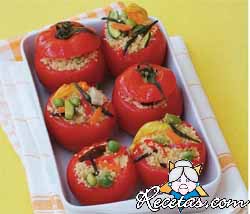 Preparación: Quitar una tapa a los tomates, vaciarlos, salarlos y dejar escurrir boca abajo. Rehogar la cebolla picada con el ajo, perejil y los filetes de anchoas picados. Retirar del fuego, agregar el [+]
